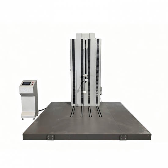 el probador de caída cero consiste en una horquilla "e" que puede moverse hacia abajo rápidamente. los productos probados se colocan en equilibrio según los requisitos de la prueba (cara, borde, prueba de ángulo).